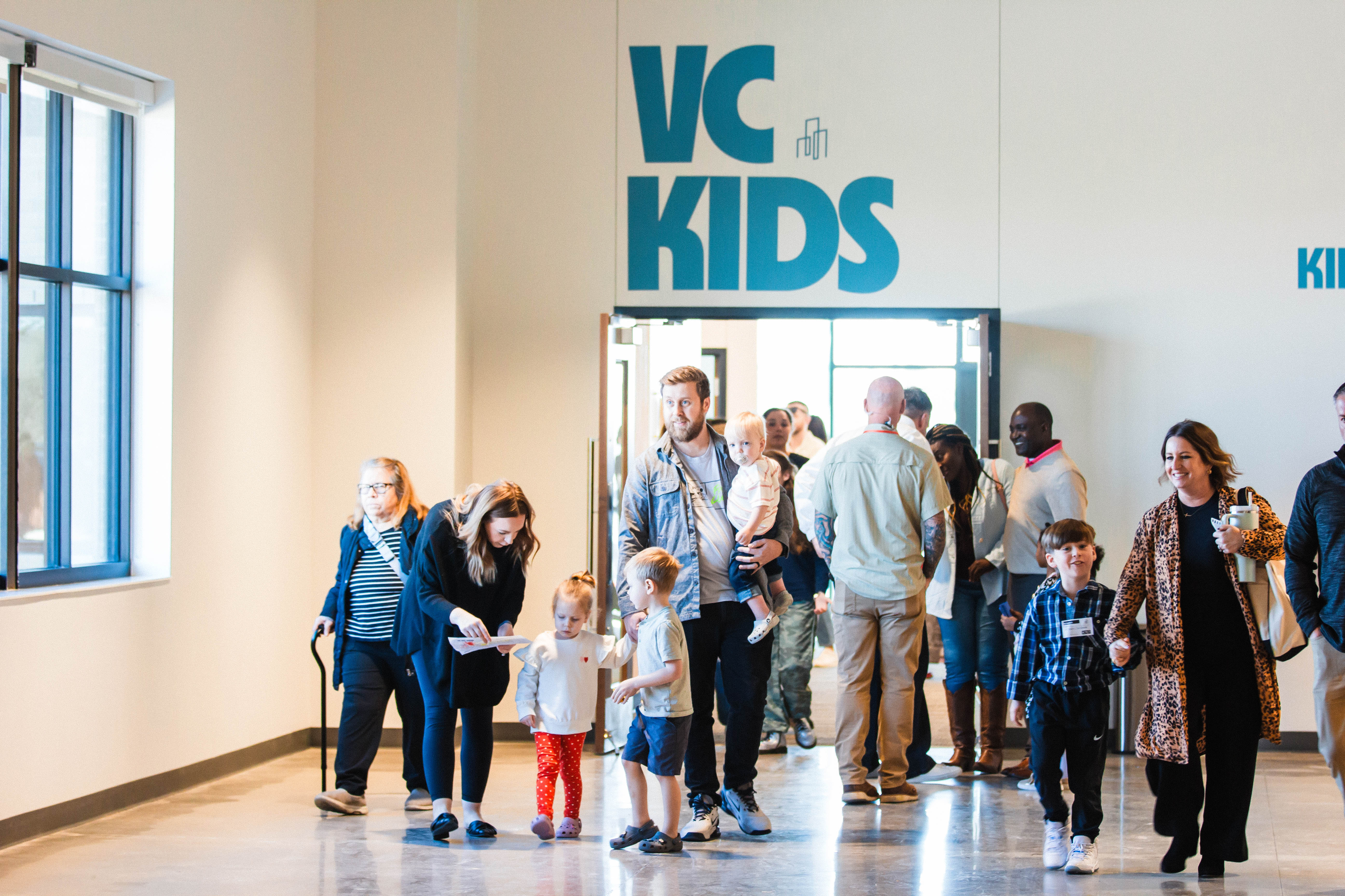 On your first visit, come directly to the VC Kids wing entrance. Our Check-in team will greet you and help you register your child on an iPad. This quick process ensures your child's safety and convenience. You'll receive printed name tags and pick-up tags. Your child will wear their name tag, and you'll keep the pick-up tag, which you'll need to re-enter the kids' area when collecting your child. After check-in, we'll guide you to the appropriate classroom where you can drop off and later pick up your child.